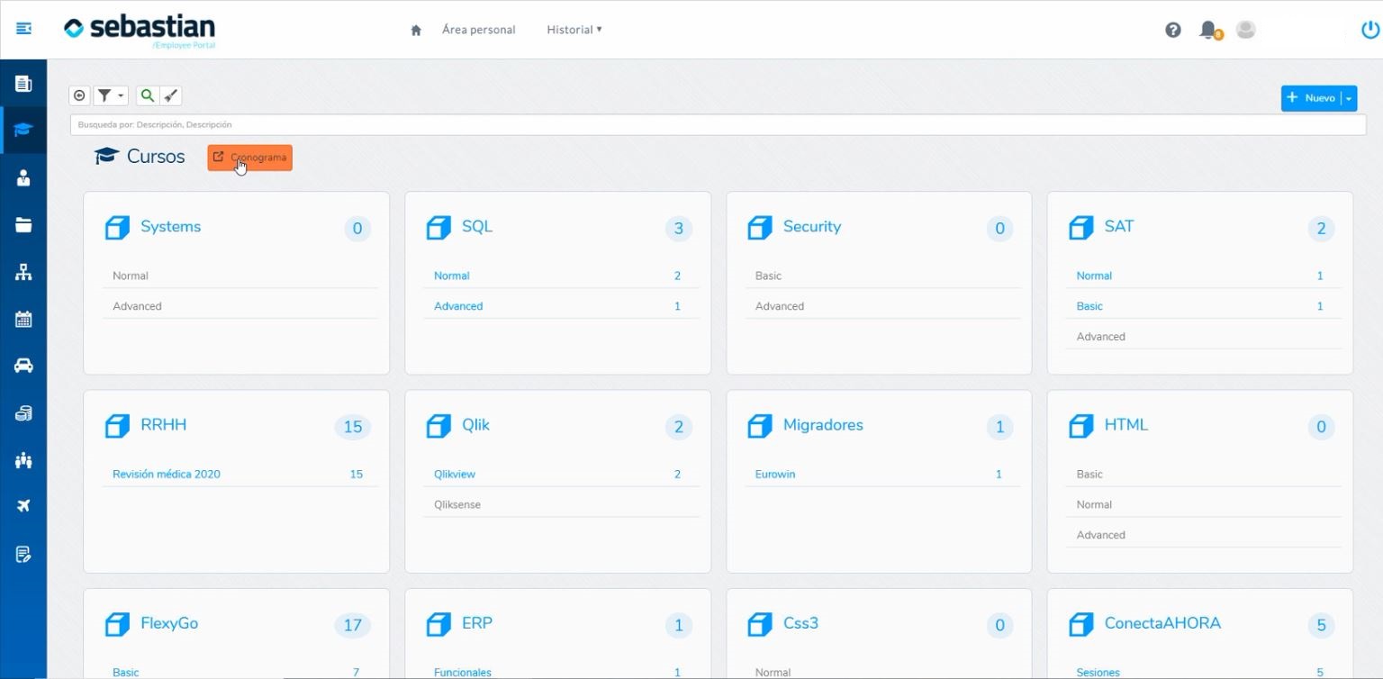 - Información sobre los cursos a los que el empleado puede inscribirse.